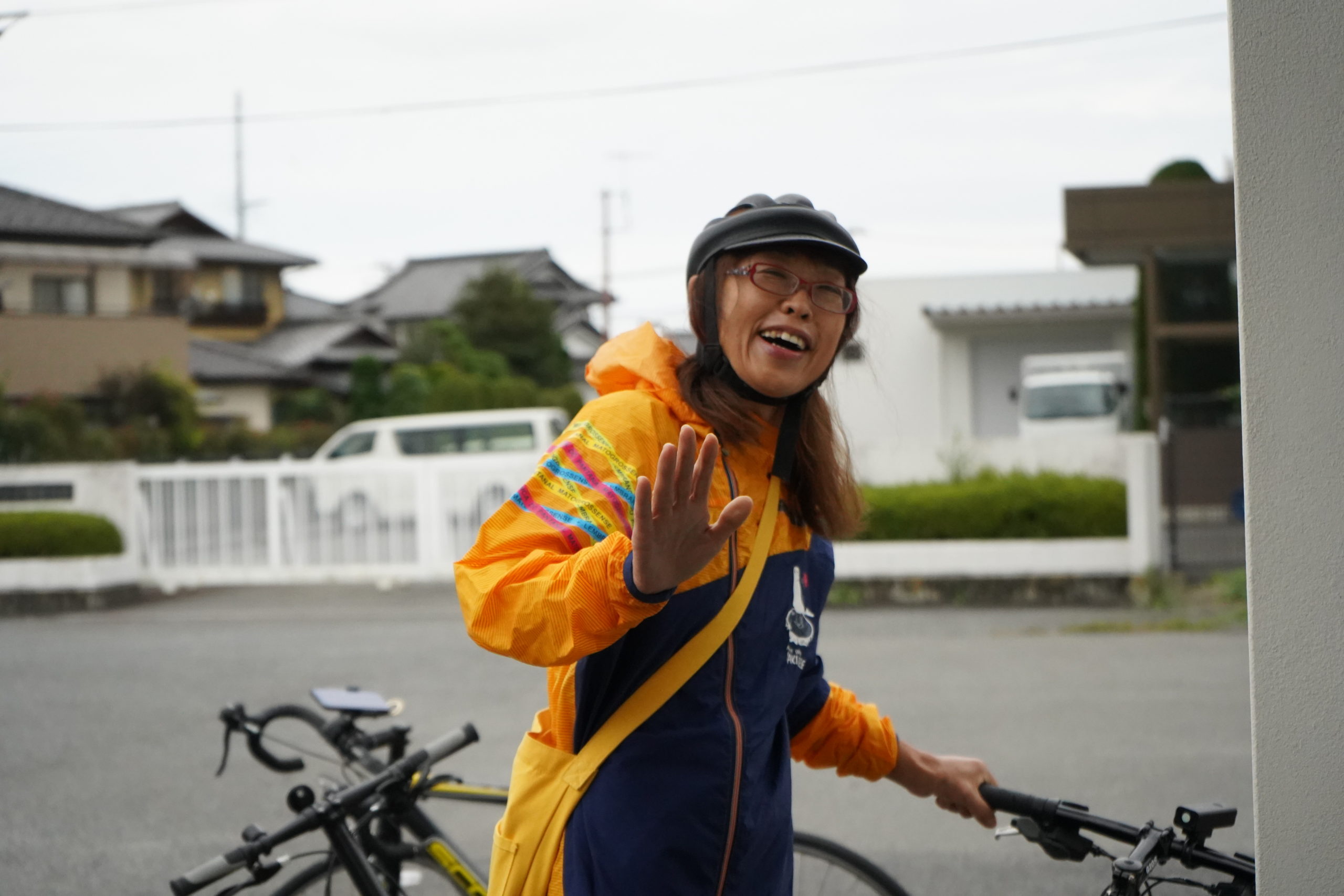 最後は、スタートで離脱になってしまったサポーター大森さんの家の前を通って赤井駅まで戻ることに。顔色が良くなった大森さんが私たちに気づいて出てきてくれました。今日のツアーについて共有したり、令和元年の台風災害の当時の様子などについても話してくれました。大森さんの家も1階は浸水し、車もダメになったとのことで、今走ってきた田んぼも、一面泥水で覆われていたそうです。