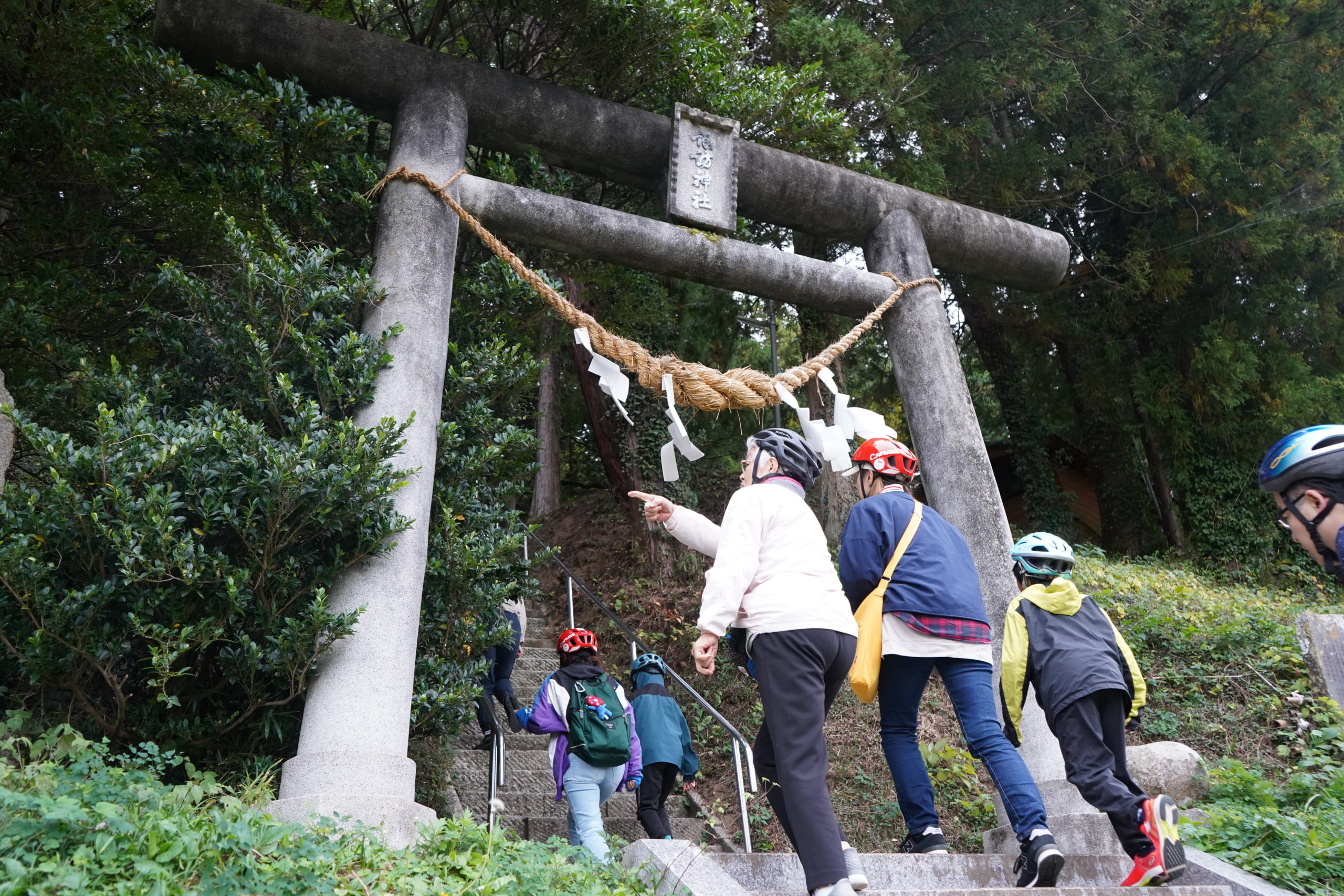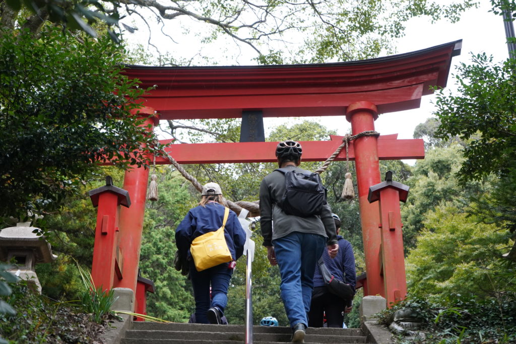次に、『南部赤井諏訪神社』に到着しました。地図で上から見ると、最初に行った北諏訪神社とちょうど直線上に位置しており、例大祭の日にはこちらでもお祭りが行われているそうです。みんなでお参りをして、最後の目的地へ!