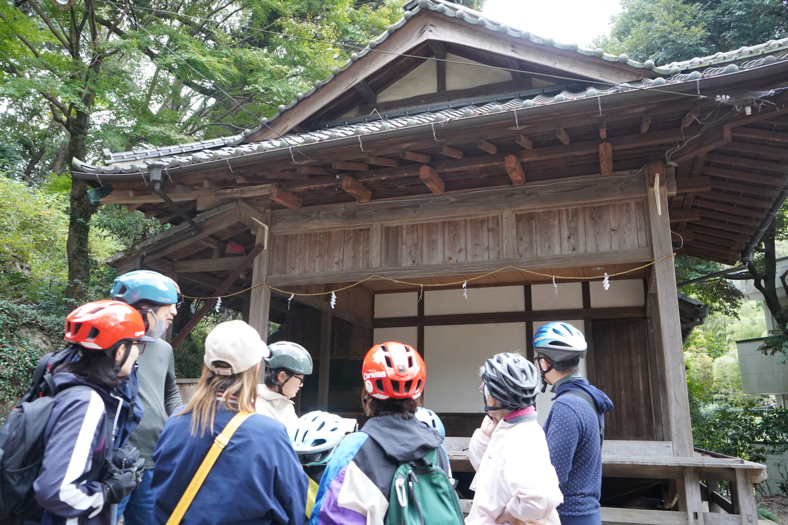 実は、時空散走運営メンバーは、昨年の夏に、赤井北諏訪神社の例大祭に行ってきました!その時初めて、山外舞を見たのですが、どの演目もとても迫力があり、惹きつけられました。子供たちも最前列で真剣に見ており、特に最後のひょっとこ舞では、大盛り上がりで、投げられるお餅や扇子を捕ろうとみんな必死でした!その時の映像をツアー参加者の皆さんにも共有しました。地域の例大祭や伝統行事が、子供たちの楽しい思い出として刻まれていることがとても大事な気がします。