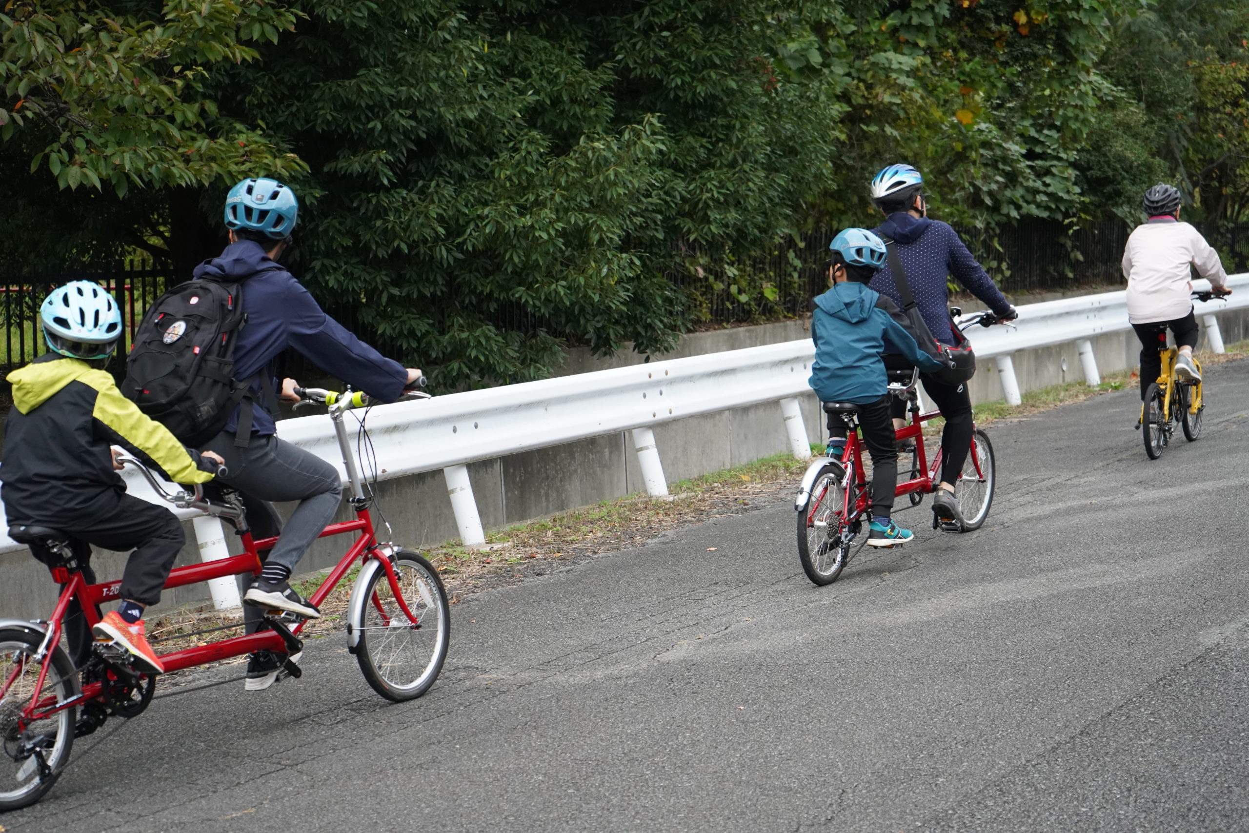 いつも参加してくれる平窪に住む小学生2人も、赤井にはあまり行く機会がないそうで、いつもと違うコースと聞いてスタート前からワクワクしている様子でした。2人は、親子タンデムで参加!もうすっかり乗りこなしています。