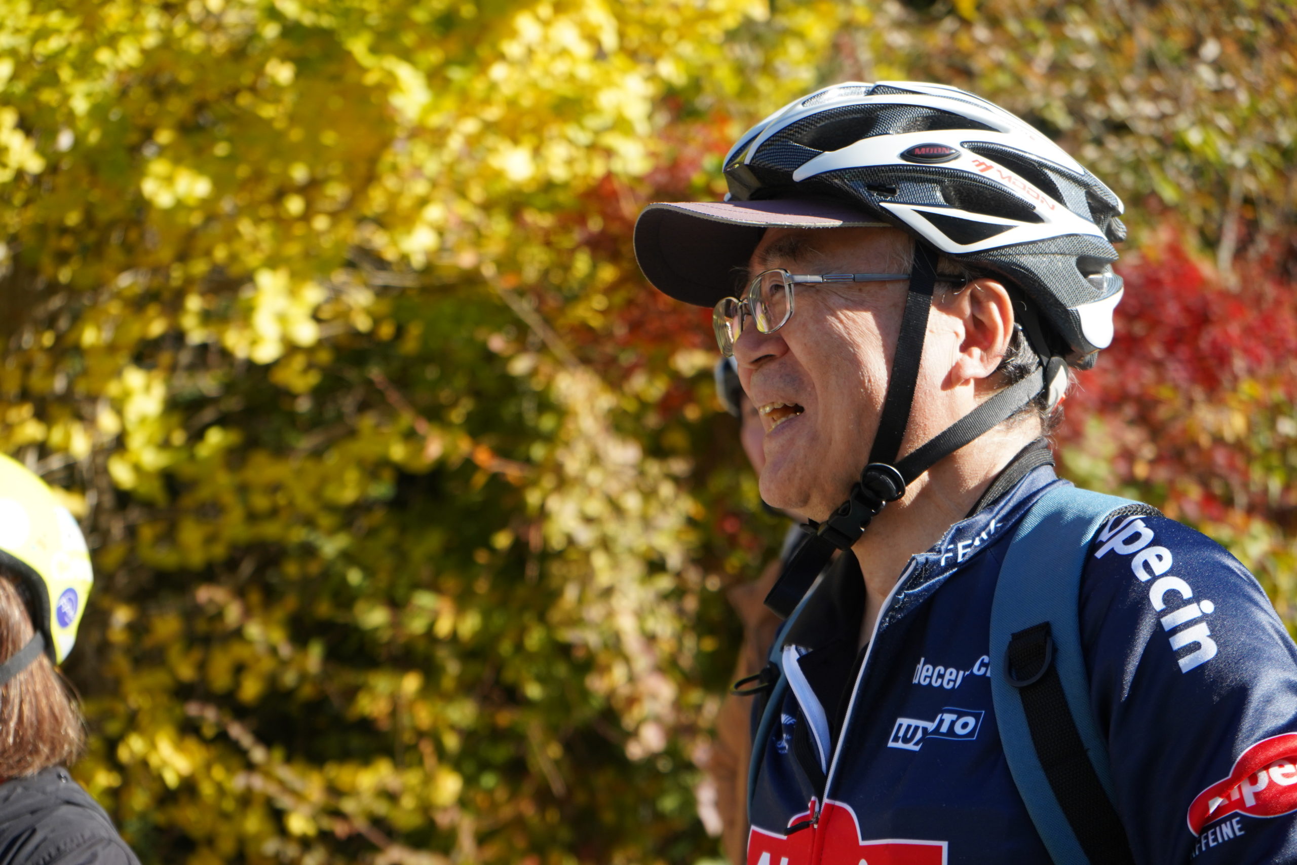 今回のツアーでは、玉山温泉・藤屋旅館からスタート!天気にも恵まれ、秋晴れの中気持ちいいツアーになりました。これまでのツアーでも藤屋旅館に立ち寄ったことはあるのですが、スタート・ゴール地点にするのは初めてです。今回も地元の方が参加してくれて、「大野・玉山に住んでいても、こっちの方に来るのは何十年ぶりだろうか!」とワクワクしながら、たくさん思い出話を語ってくれました。