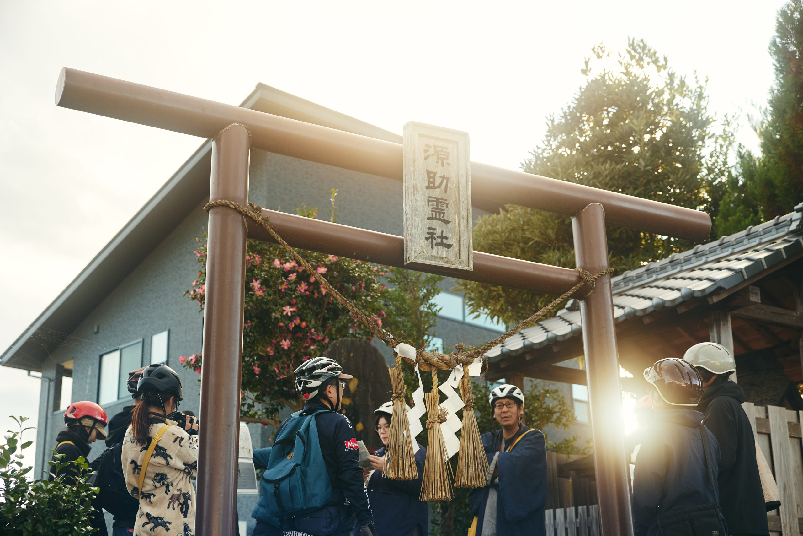 その後、窪田町商店会の老舗呉服屋・田口呉服店に立ち寄ってご挨拶させていただき、『源助霊社』に向かいました!すると、参加者の一人が、「ここまでの道でふと思い出しました。小さい頃にこの近くの歯医者に通っていました。当時はもっと栄えてましたね。」と話してくれました。何十年と来ていない場所でも、頭の奥底で忘れかけていた思い出や当時の情景がぶわっと蘇る。その参加者の目や表情がとてもキラキラしていて、こちらにまで思い出が伝わってきました。