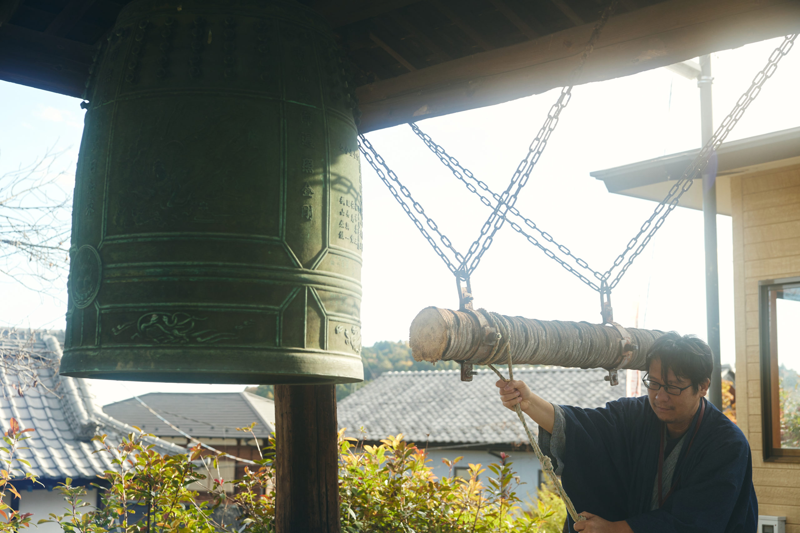 住職が出てきてくれて、「好きなだけ鐘鳴らしていいよ」と言ってくださり、みんなで鐘を鳴らしました。意外と重たく、難しそうな様子でしたが、深く長い鐘の音が綺麗に響いていました。